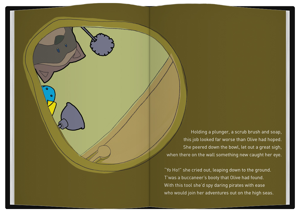 As the tale unfolds, Olive stumbles upon discarded items within her home, each becoming a canvas for her wild imagination. Take, for instance, a seemingly mundane used toilet paper roll her mother deems trash. To her mother, it's just that – an empty roll. But through Olive's imaginative lens, it transforms into a spyglass, an essential tool for her pirate escapades. As you read, you, like her mother, see only the empty roll, until the moment you peer through the augmented reality lens. Suddenly, the mundane becomes magical as the spyglass Olive envisions comes to life before your eyes.
