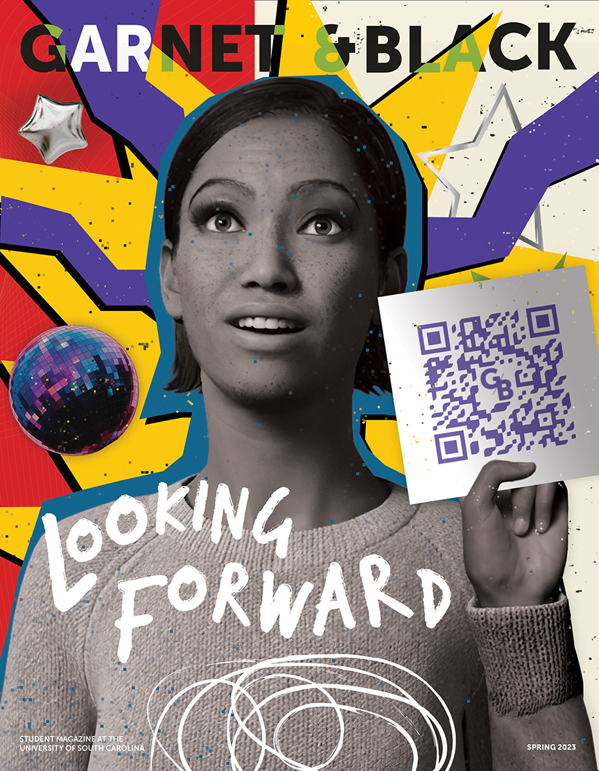 “Looking Forward” Garnet & Black Spring 2023 Cover - Aaron Falls, Savannah Nagy, Melissa Borgerding