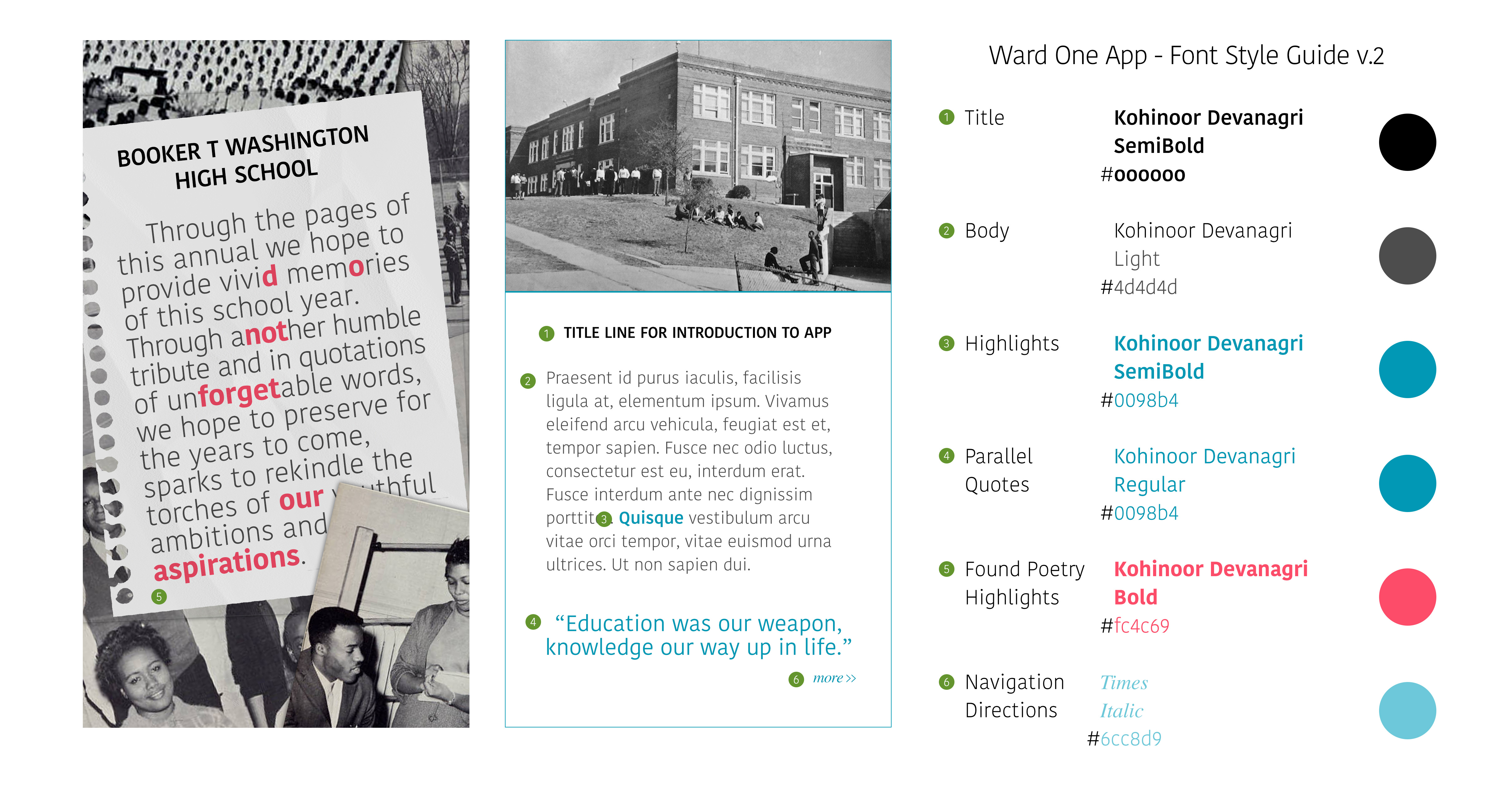 Found Poetry - This high-fidelity previsualization demonstrates the functionality of a Found Poetry section which uses used the words of the Ward One residents as a base to dive deeper into parallel text and stories.