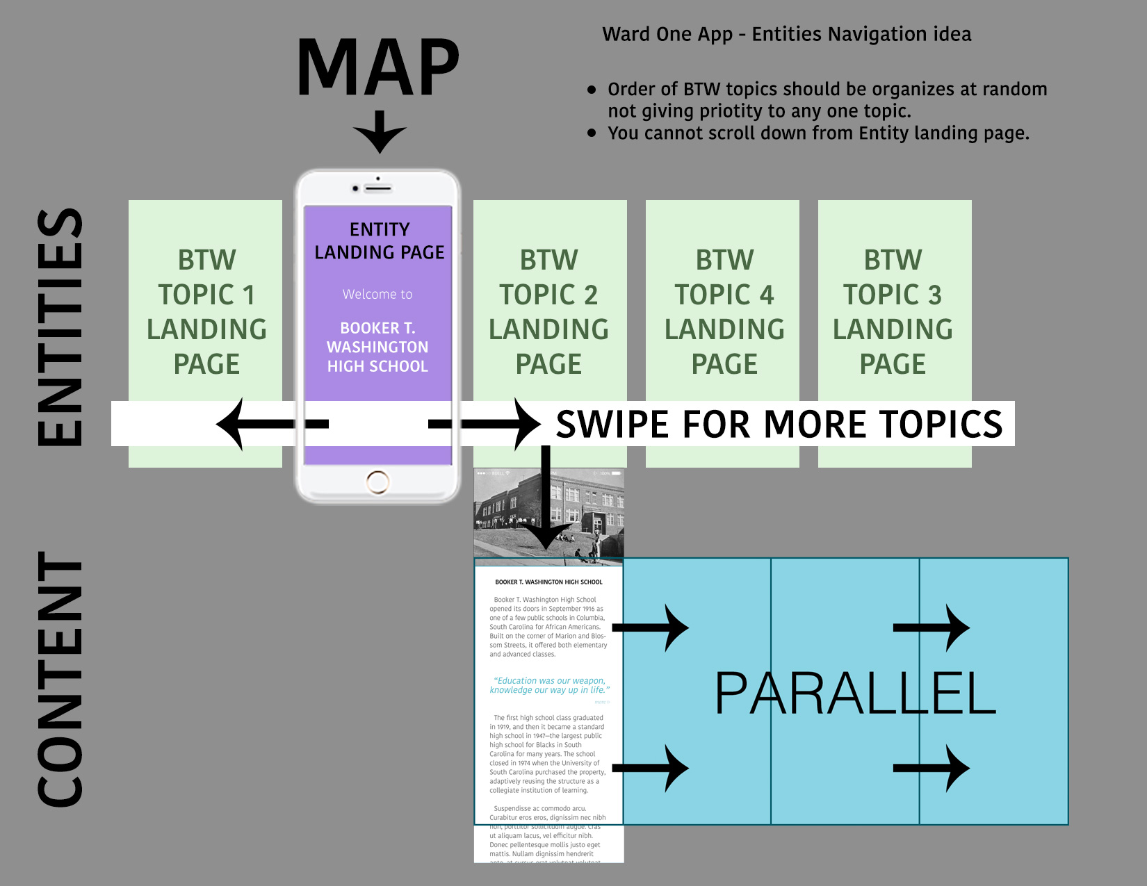 Ward One App is an interactive experience that aims to bring to light a community of families that was forcefully removed due to urban renewal and university expansion in the 50s-70s. The app asks you to consider what the cost expansion, and to an extent gentrification, brings to a community in its way. The app engages with Ward One, a community that stood where part of the University of South Carolina stands now. It brings the voice of the ward into the present and invites you to engage in their lives the way they once were. It’s not focused feeling bad or guilty about what happened to Ward One, instead it’s a celebration of culture, community, and families.